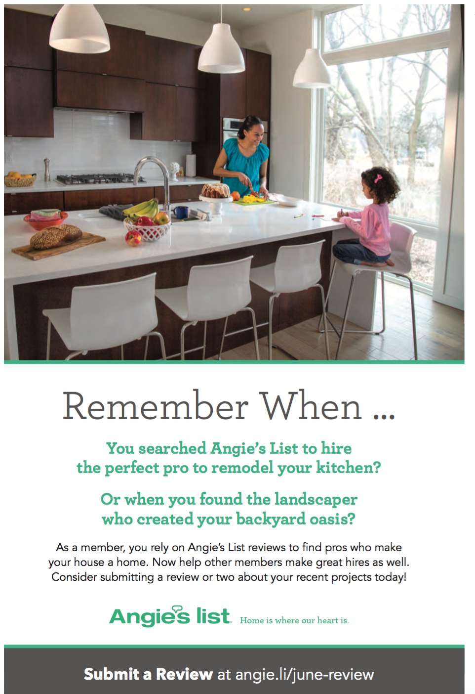 Angie's List Magazine • 1st September 2017 Write. Click. Share. Goal: Encourage members to submit a review of their recent services.